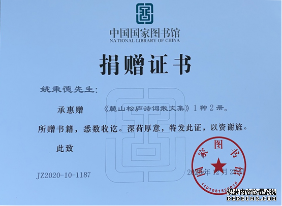 《麓山松庐诗词散文集》已由中国现代文学馆、国家图书馆、岳麓书院收藏,在当当网及各地新华书店上架销售。